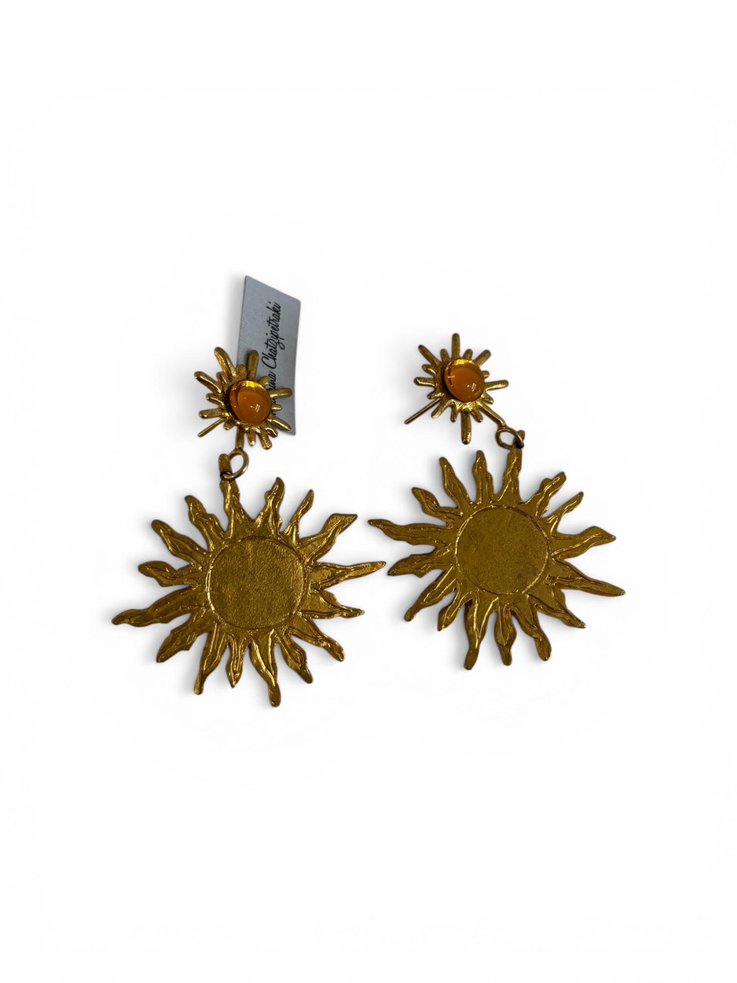 Gold-plated bronze earrings with a bold sun-inspired design.