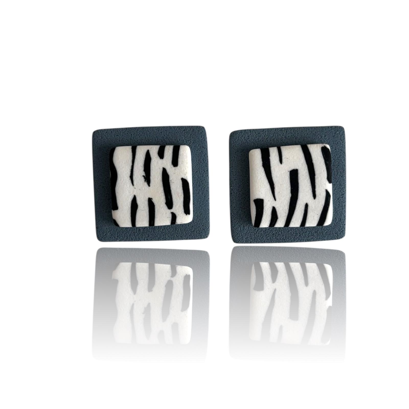 Handcrafted polymer clay earrings with a bold geometric design.