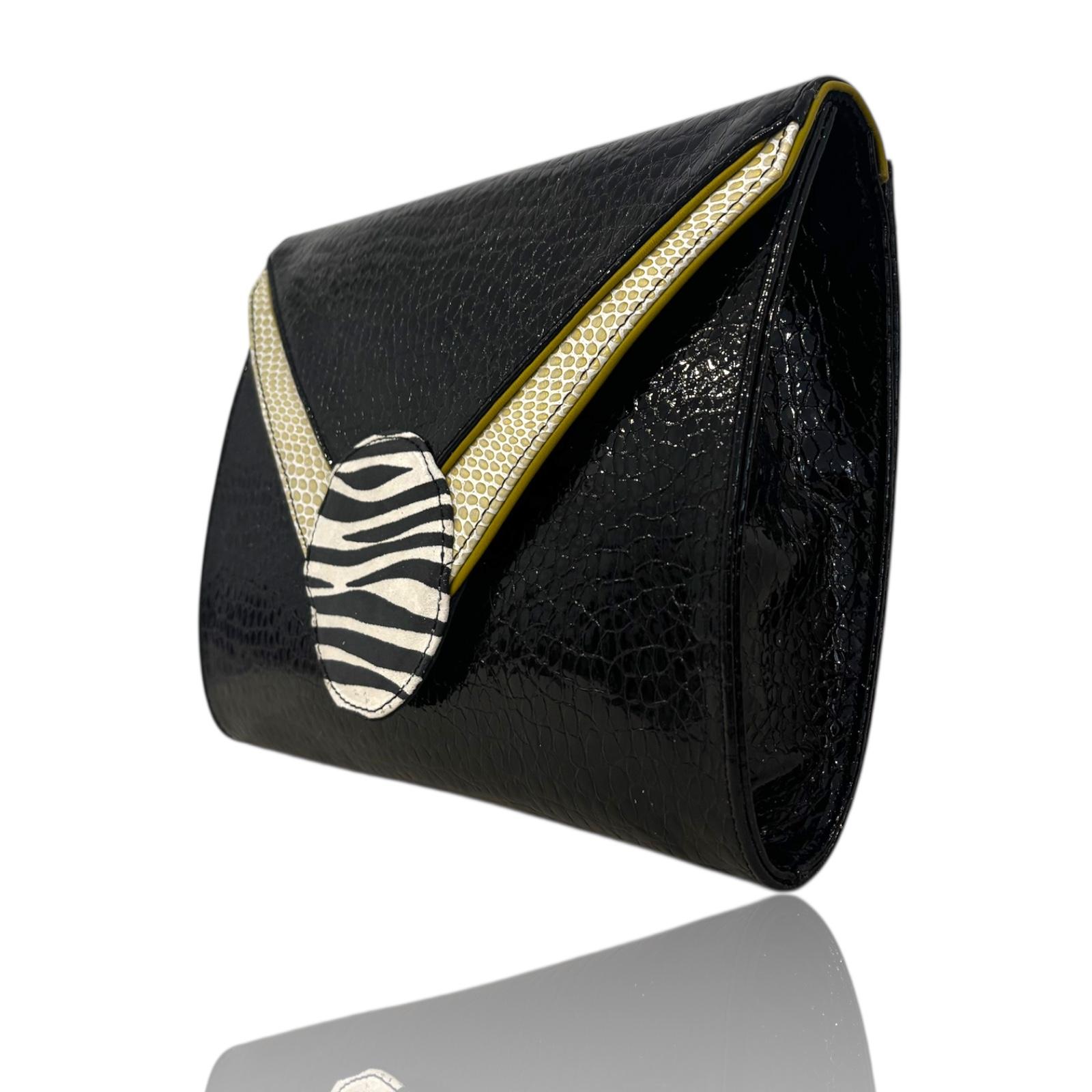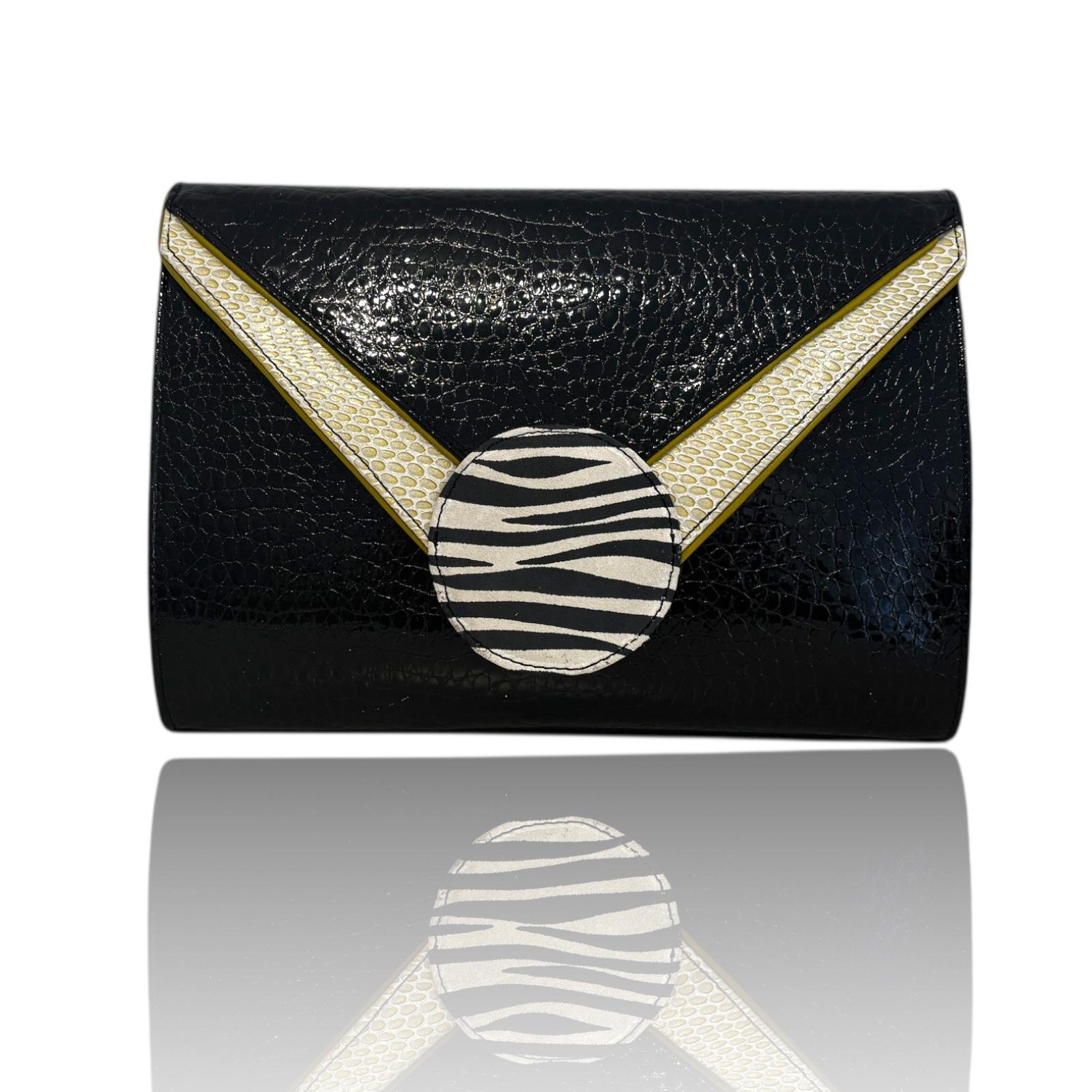 Large clutch bag made of leather with leather adjustable strap for cross body.