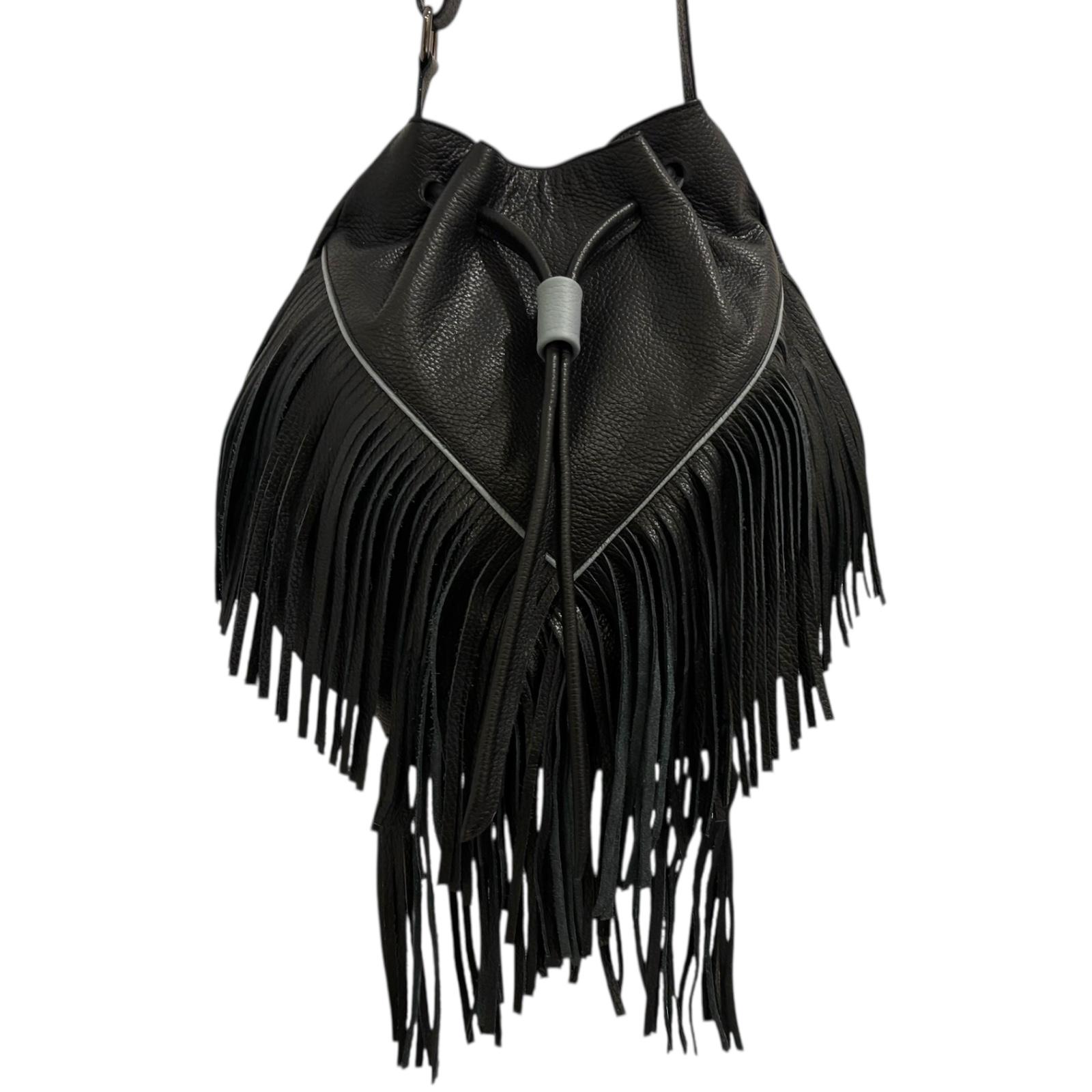 Medium cross- body bag made of leather with leather fringe details with adjustable strap.